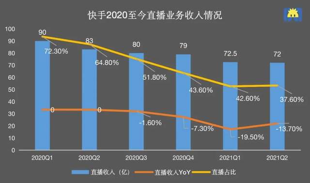自 2016 年正式推出的直播业务,一直是快手赖以生存的“基本盘”,但从财报看已经发生变化,直播业务的收入、收入占比、付费人数,均在走低。