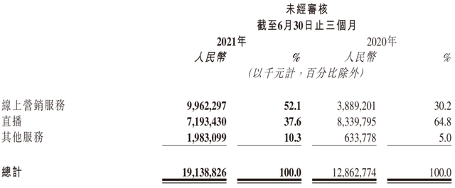 要知道,上市之初的万亿市值,一度让快手成为中国第五大互联网上市公司,排在腾讯、阿里、美团和拼多多之后。但此后市场对快手的判断回归理性,从今年发布的两份财报也能看出快手的焦急:切换了主要收入来源,长期倚靠的直播打赏收入,占比在今年第二季度降到了四成以下,取而代之的是线上营销收入占比过半,电商部分收入有所上浮。
