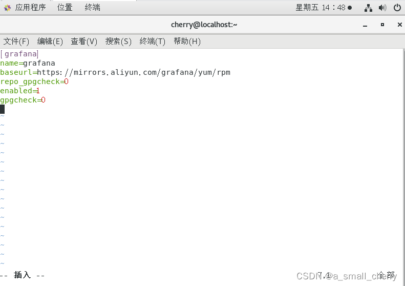 新建/etc/yum.repos.d/grafana.repo,内容为