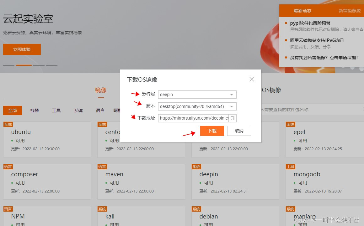 先到阿里巴巴开源镜像站上下载号deepin系统